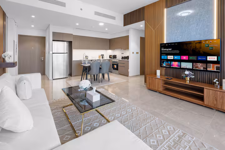 Sea Breeze Retreat welcomes you to an unforgettable stay in our stunning 2-bedroom apartment at Grande Residence, where breathtaking skyline views, modern design, and world-class amenities create the perfect Downtown Dubai experience. Nestled in the heart of the city, this elegant home offers front-row access to the Burj Khalifa, the Dubai Fountain, and everything that makes Downtown unforgettable.