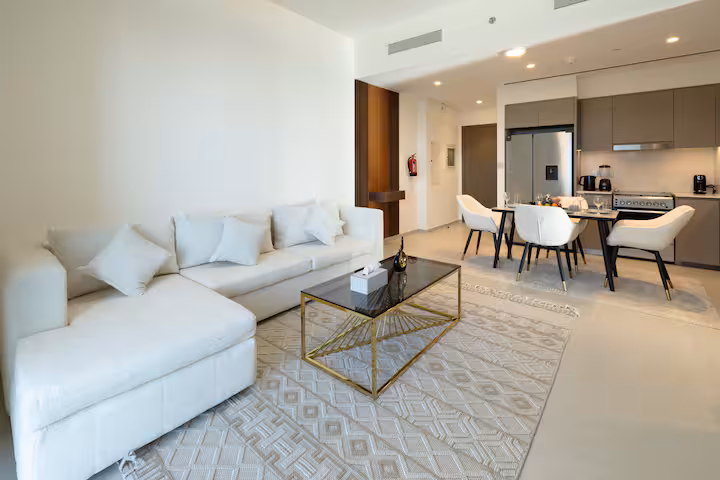Sea Breeze Retreat invites you to experience elevated luxury in our stunning 2-bedroom apartment at Grande Signature, where panoramic Burj Khalifa and Dubai Fountain views unfold from the private balcony. Nestled in Downtown Dubai’s prestigious Opera District, this sophisticated retreat pairs designer interiors with premier amenities for a truly unforgettable stay.